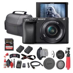 Sony a6400 Mirrorless Camera with 16-50mm Lens with Real-Time Eye Auto Focus, 4K Video (ILCE-6400L/B) + 64GB Memory Card + NP-FW50 Battery + Charger + Case + Flexible Tripod