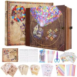 Adventure Book Scrapbook Photo Album,Retro Style Embossed Letter Cover Travel Diary Journal Scrap Book Kit For Couples,Memory Book For Anniversary Wedding,Christmas,Valentine’s Day(Balloon)