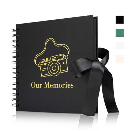 Scrapbook Album – 80 Pages Photo Album, Scrapbook – Photo Book with Gold Foil, Wedding Scrapbook – Couples Scrapbook for Anniversary,Birthday,Travel Black