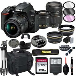 This Al’s Variety Exclusive Bundle Comes with: Nikon D3500 Camera Body Nikon AF-P 18-55mm f/3.5-5.6 VR Lens Tamron 70-300mm f/4-5.6 Di LD Macro Autofocus Lens for Nikon AF Transcend