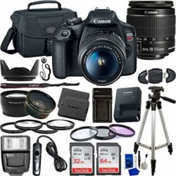 This Jerry’s Photo Bundle Comes with: Canon EOS 4000D Camera Body Canon EF-S 18-55mm f/3.5-5.6 III Lens Lens Cleaning Cloth Product Features This Jerry’s Photo DSLR Camera Package Includes-