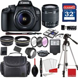 Canon EOS 4000D DSLR Camera with 18-55mm f/3.5-5.6 III Lens. This Digital SLR Camera Bundle Includes:Canon EOS 4000D DSLR Camera Canon 18-55mm f/3.5-5.6 III LensCanon Battery & ChargerCanon Wide