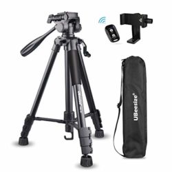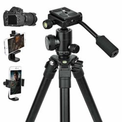 Lightweight & Load Capacity This camera tripod is mainly designed for travel, the height of this camera tripod can be adjusted from 22″ To 59″ with 3 sections and
