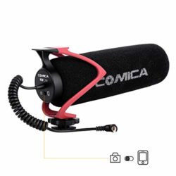 COMICA CVM-V30 LITE super cardioid condenser lite microphone, suit for camera, smartphone. Meanwhile the Microphone designed with excellent shock mount, no battery drive, super low noise electronics, super anti-interference,