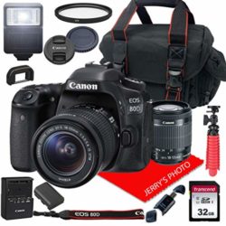 This Jerry’s Photo Bundle Comes with: Canon EOS 80D Camera Body Canon EF-S 18-55mm f/3.5-5.6 STM Lens 32GB SD Memeory Card USB SD Card Reader Deluxe Gadget Bag 58mm